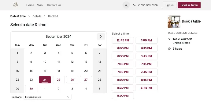Reservación de mesas en línea. Los clientes pueden reservar mesas en línea con la aplicación Citas de Odoo. Estas mesas aparecerán en un mapa personalizable que puedes editar con facilidad desde el editor gráfico.